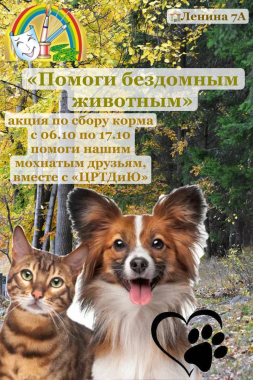 Помните, что даже небольшая помощь имеет значение. Объединившись, мы можем сделать мир лучше и добрее для тех, кто в этом так нуждается. Присоединяйтесь к нашей акции. Подарите бездомным животным надежду и помогите