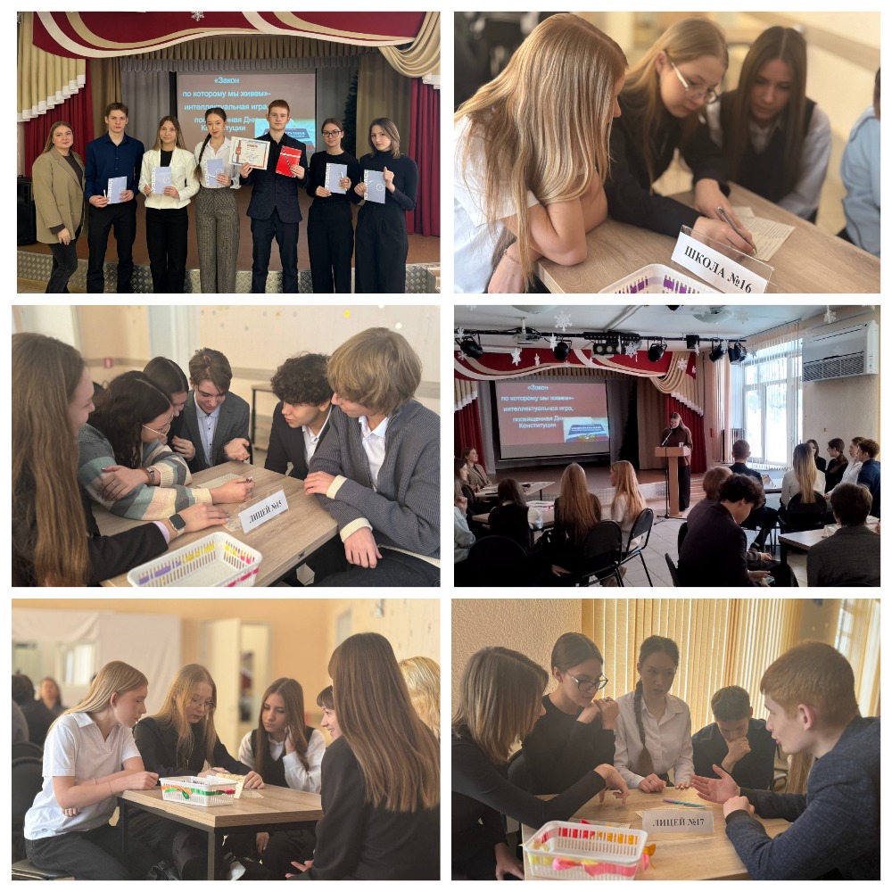 11 декабря в стенах нашего центра было по-настоящему жарко и познавательно! Мы провели интеллектуальную игру "Закон, по которому живем", посвященную знанию основ нашей Конституции. В этой напряженной борьбе умов сошлись команды 10-х классов из Школы №16, Лицея №15 и Лицея №17.